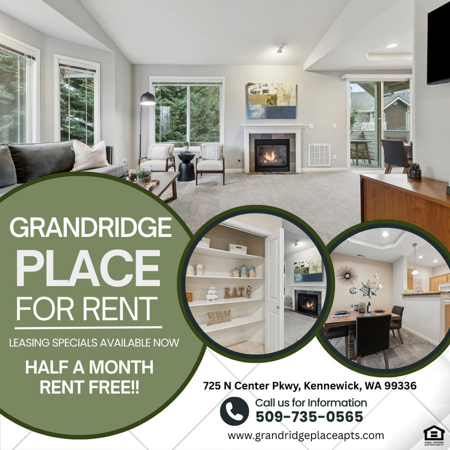 | Grandridge Place Apartments and Town Homes offers a luxurious condo-style living. We have beautifully appointed 1, 2 and 3 Bedroom floor plans which include town homes that offer 2-car garages with 2-car drive ways. Each apartment home offers you spacious living and features that rival any place in town. You will enjoy Oversized Windows to maximize light, a Gas Burning Fireplace, Built in Microwave and Dishwasher, Insta Hot water faucet, Vaulted or Nine Foot Ceilings and much more.